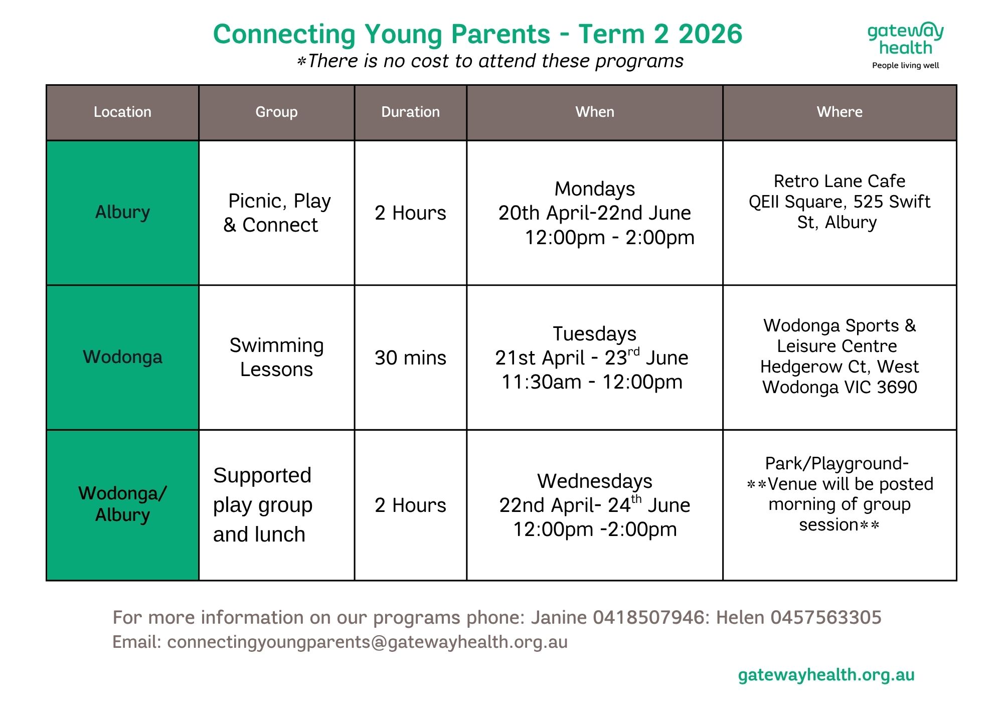 To make a referral or enquire about the program, contact Gateway Health on