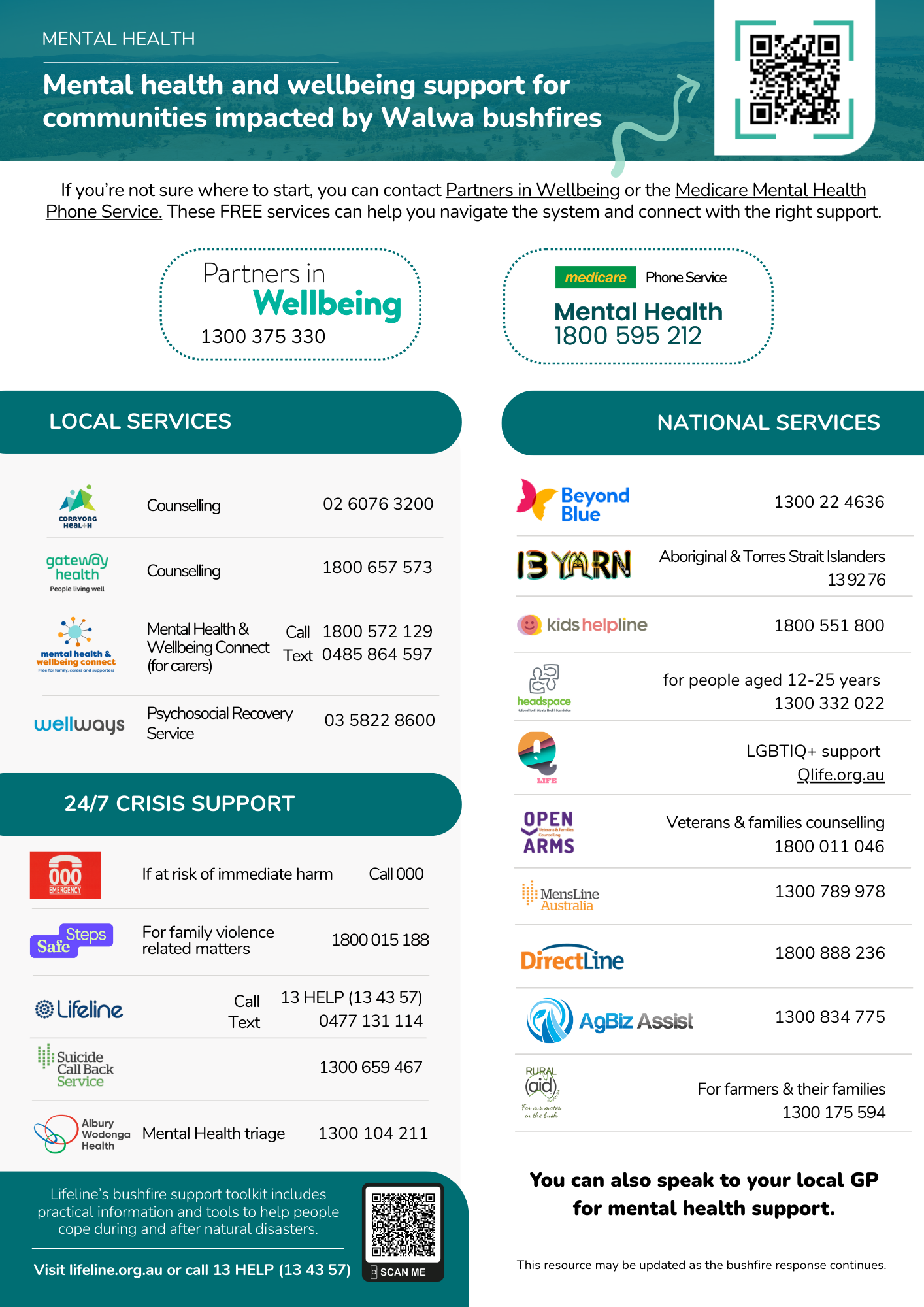 Gateway Health is working closely with partner agencies to support community members who may be experiencing distress following current bushfire activity across our region.